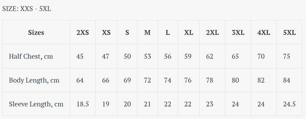 Sizes | 2XS | XS | S | M | L | XL | 2XL | 3XL | 4XL | 5XL |