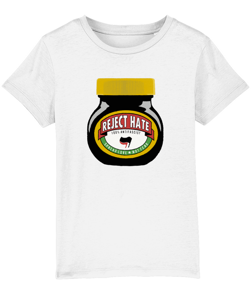 Children's White "Reject Hate" T Shirt - 100% from recycled plastic bottles!