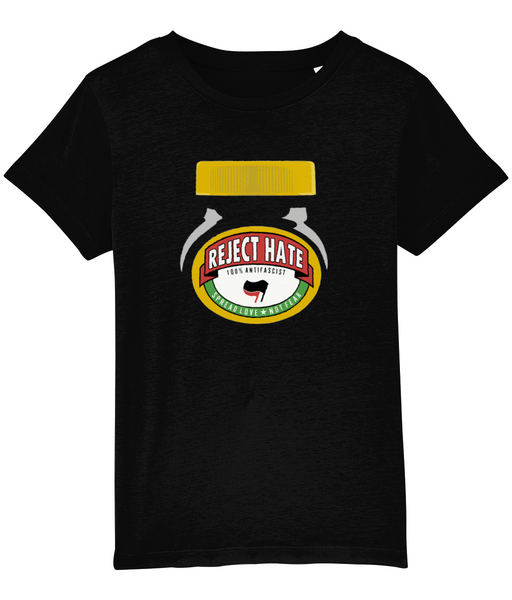 Children's Black "Reject Hate" T Shirt - 100% from recycled plastic bottles!